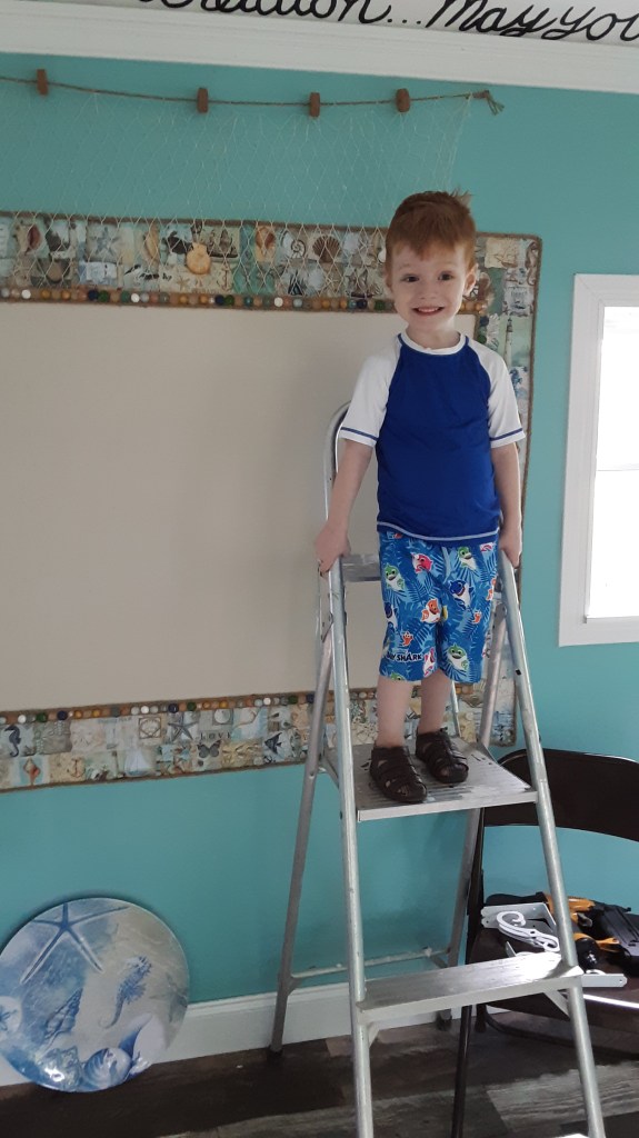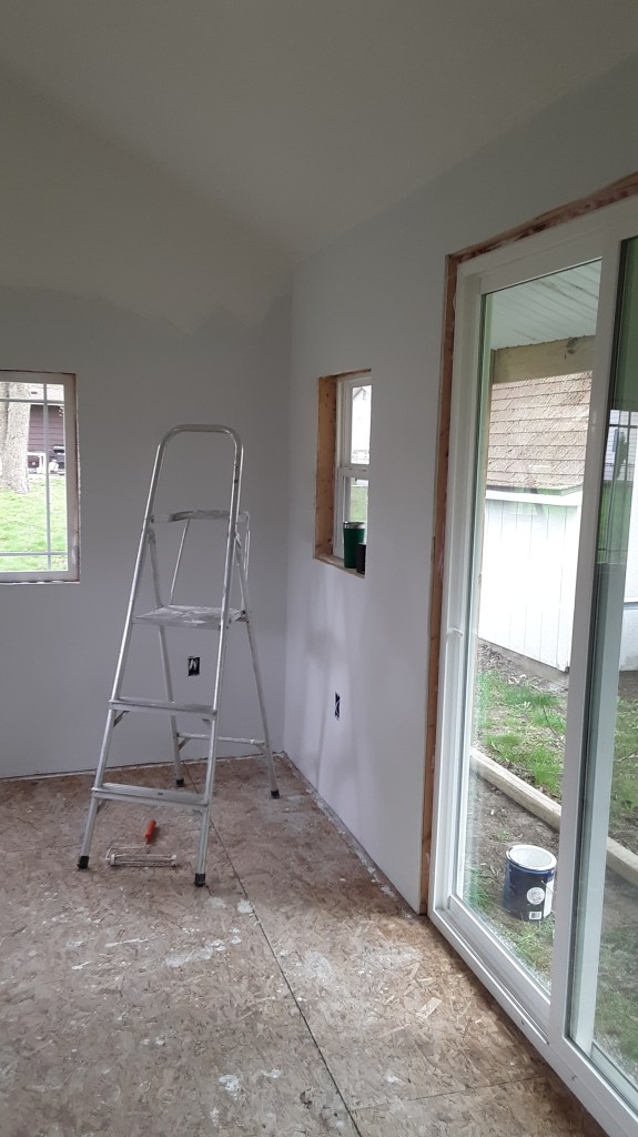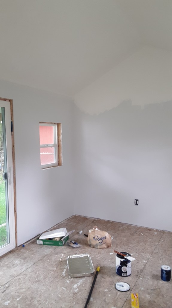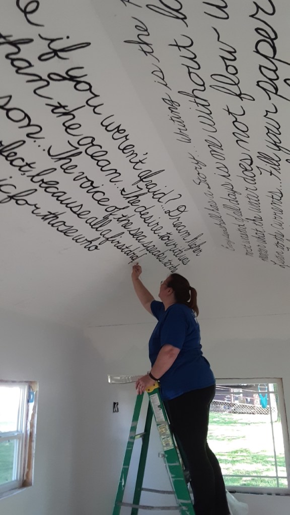My brother-in-law and nephew did a fantastic job constructing the studio with sturdy bones that will keep me cozy and warm during the winter months. Their knowledge and expertise of the construction world gave me a structure that will stand the test of time. My husband and I finished the interior by taping, mudding and painting the drywall, adding trim and flooring, and decorating with furniture and crafts. My mother also contributed with her own artwork that can be found in paintings and custom-made bottles.