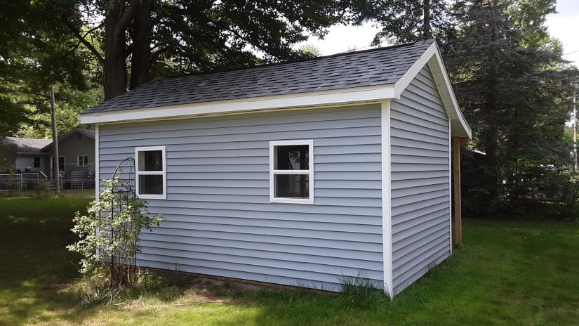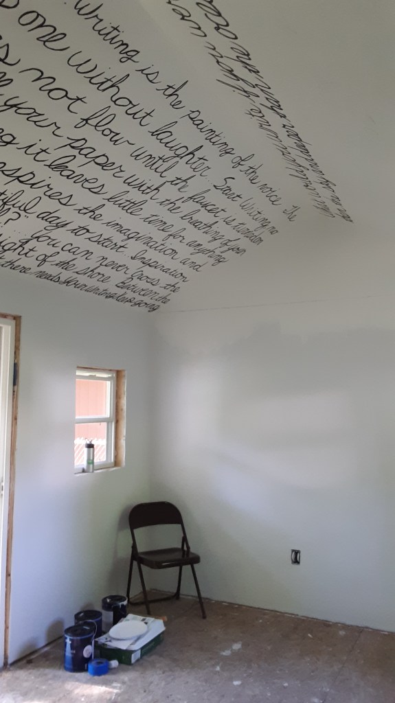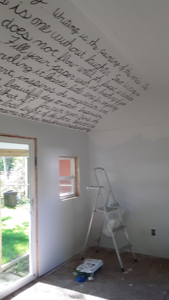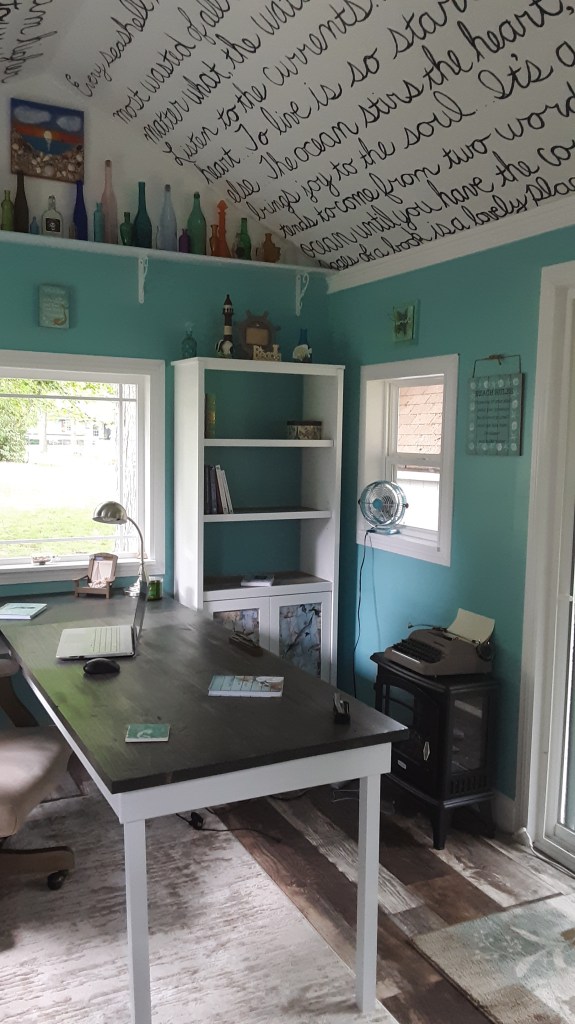 The project of building my writing studio took six months of planning and two years to complete; much longer than I had anticipated. A few challenges crept up along the way that snagged the project, but my determination to see a dream come true created something more than I could have ever imagined. What started out as a dream of a small tree house ended up in a 10’ x 16’ fully furnished shed with a 9 foot ceiling at the peek.