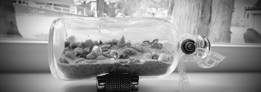 After much thought, the theme of my writing studio would reveal itself as Reading on the Beach. In every essence of the word “beach” and everything that accompanies it, I wanted the sand and surf represented inside this studio. The floor’s purpose was to look like planks from a sunken ship with a rug of sand to tickle toes and warm feet. Fish netting would capture some of my most precious memories, and colorful bottles would line up along the deck before their decent into the depths of the ocean. They would shatter into multiple pieces before tumbling around the ocean floor until they becomes beautiful sparkling treasures washed up on shore.