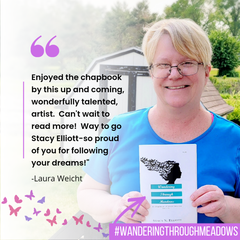 Wandering Through Meadows is a chapbook series of fun, fantastical, and sometimes romantic short stories. Each book contains four short stories in the following genres: literary, fantasy, romance, and general fiction. In volume one, read about swashbuckling pirates and one young boy's adventures at sea, trouble is afoot among fairies and imps in one woman's decrepit garden, how the ordinary becomes extraordinary as a sinister evil lurks, or discover a love affair nearly foiled by rain and fear. In volume two, read about one young lady's dream of independence, another woman's trip down the metaphorical rabbit hole, a couple's first date interrupted in a bad way, and find out what happens when a woman's desire trumps sensibility. And in volume three, read about a mermaid's obsession with unrequited love, children at play (hmm... the names of these characters seem familiar!), a young girl's transition from her magical playhouse, and a dancing feline.